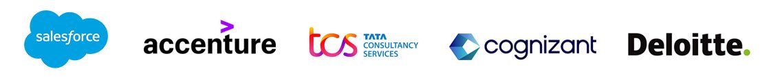 We have strong ties with top global companies looking for Salesforce certified professionals. Some of our placement partners include: